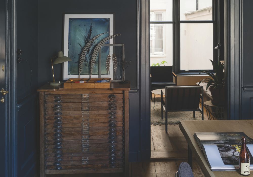 Si te gustan los ambientes audaces y con carácter, las paredes en tonos intensos, oscuros y profundos también son una alternativa excelente. Colores como el verde oscuro, el azul marino o el gris antracita, incluso el marrón chocolate, son tendencia, y aportan un efecto envolvente y cálido como escenario de los muebles de madera oscura. Esta combinación contribuye a crean un ambiente íntimo y cálido, ideal para estudios, bibliotecas y salones. Siempre se pueden añadir detalles luminosos en tonos claros o neutros, como alfombras, cortinas o cojines para equilibrar la oscuridad de las paredes, así como incorporar espejos y elementos metálicos que reflejen la luz.