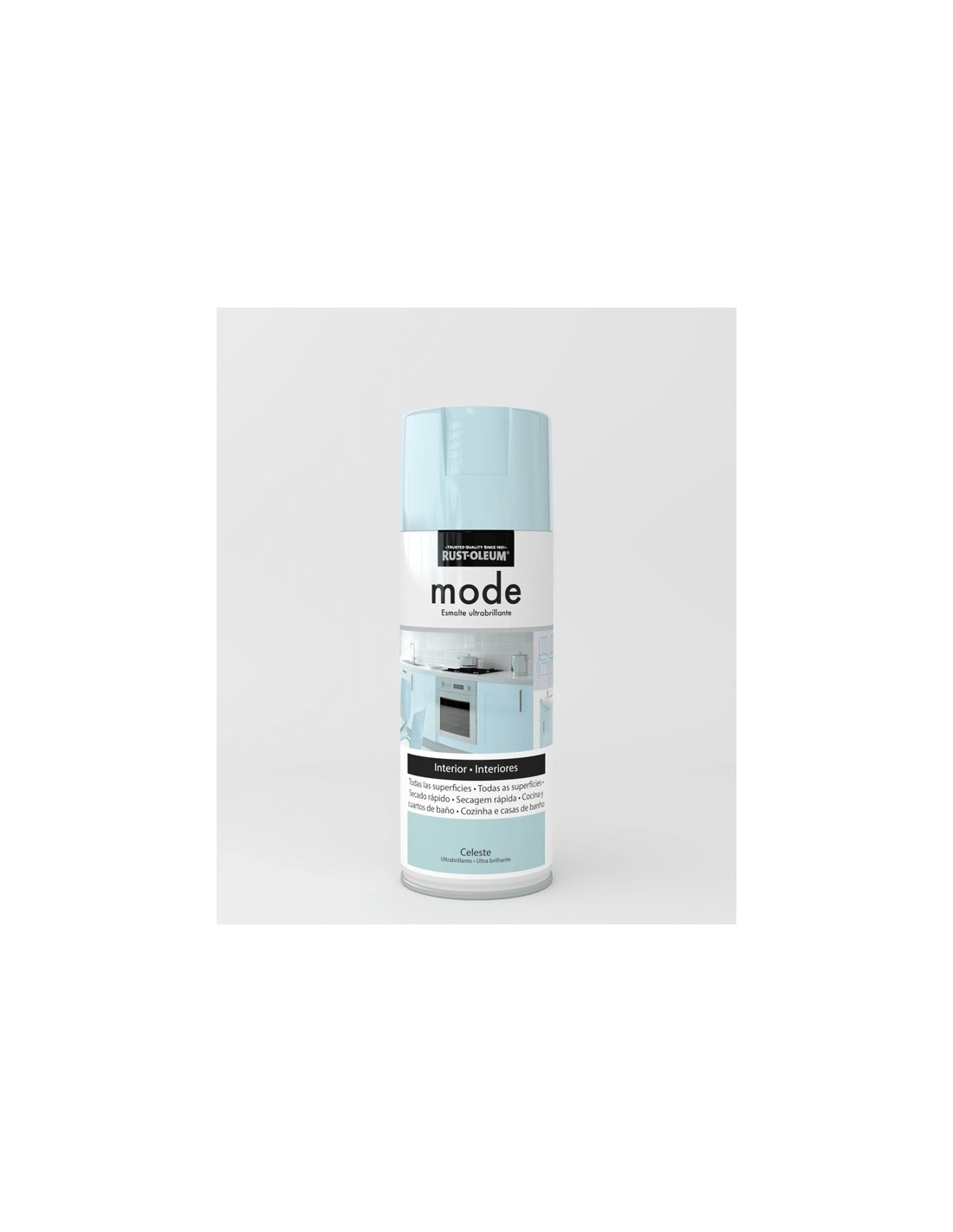 Pintura en spray mode, es una pintura en aerosol que aporta un excelente acabado ultrabrillante, proporcionando un acabado esmaltado como si fuera de fábrica. Especial para cocinas y baños, sobre melanina, MDF y metal.